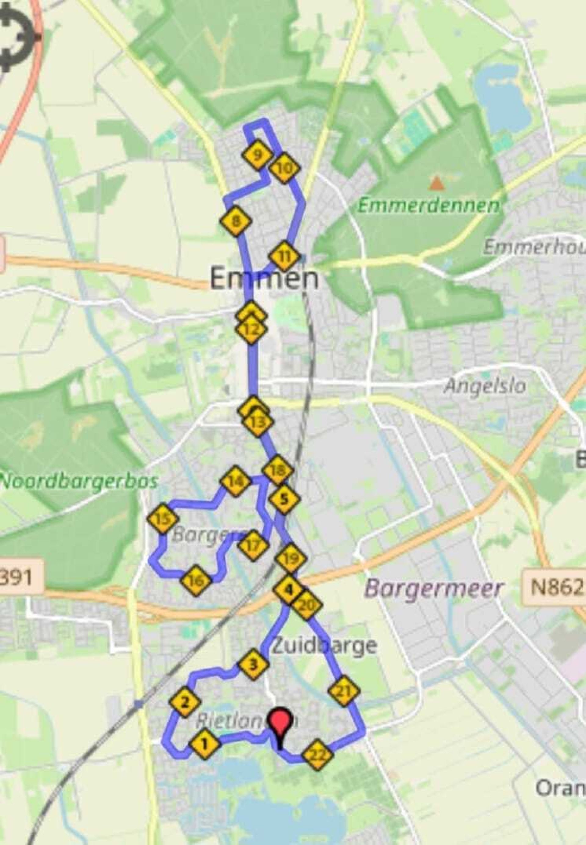 De stoet vertrekt om 13.00 uur vanaf het Leeuwerikenveld in Emmen. Op onderstaande kaart vind je de route die de vrachtwagens gaan rijden. Wil je de exacte plekken en straatnamen weten waar de vrachtwagens langsgaan? Download dan de routebeschrijving via onderstaande knop.